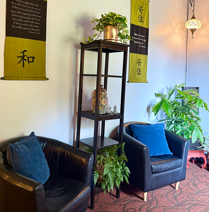 - Parties of 3 or more receiving 2 or more services each may enjoy the privacy of our Relaxation Room*, free of charge. We provide light refreshments of cheese and crackers and a complementary bottle of sparkling cider.